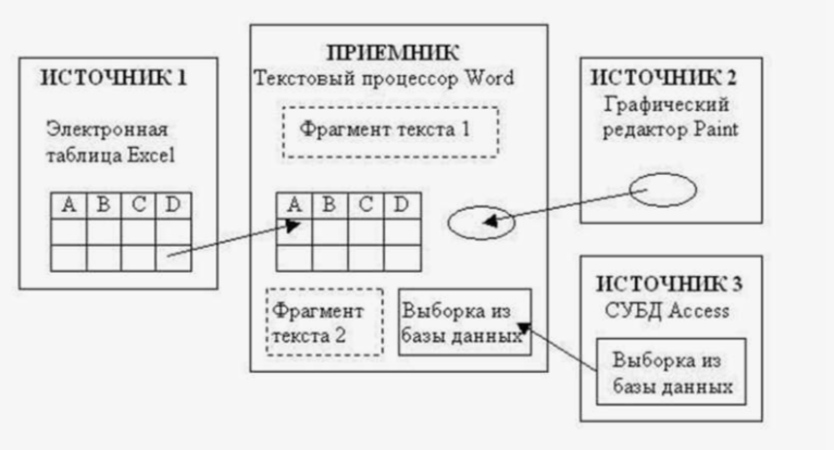 4. Виды составных документов Составной (интегрированный) документ — файл, содержащий фрагменты разного типа, созданные в различных приложениях. Примеры: • отчёт с текстом, таблицей Excel и диаграммой; • презентация со встроенными видео и аудио; • буклет с текстом, фотографиями и векторной графикой. Компоненты: • Источник (сервер) — приложение, откуда берётся фрагмент (например, Excel). • Приёмник (клиент) — основной документ, куда вставляются объекты (например, Word).